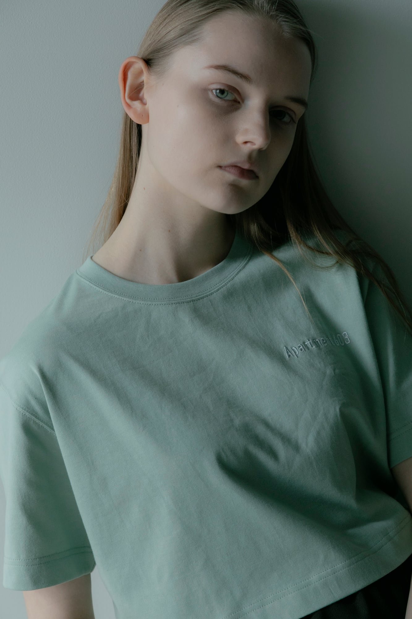 綿100%のクロップ丈のT-Shirt。身幅は広めに設定しているので様々なボトムスとの相性も良く、スタイリングも容易。ワンサイズ展開です。