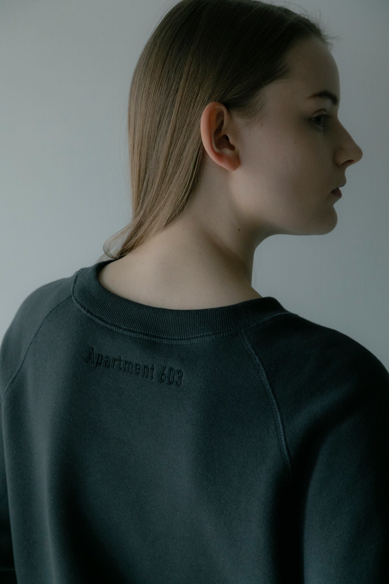 綿100%のUNISEXスウェットシャツ。緩やかな前後の丈差が柔らかな印象を醸し出し、リブではなくラウンドした裾に仕上げることでこなれたスタイリングが可能に。あるようで無い、新しいスウェットシャツの提案です。ワンサイズ展開です。