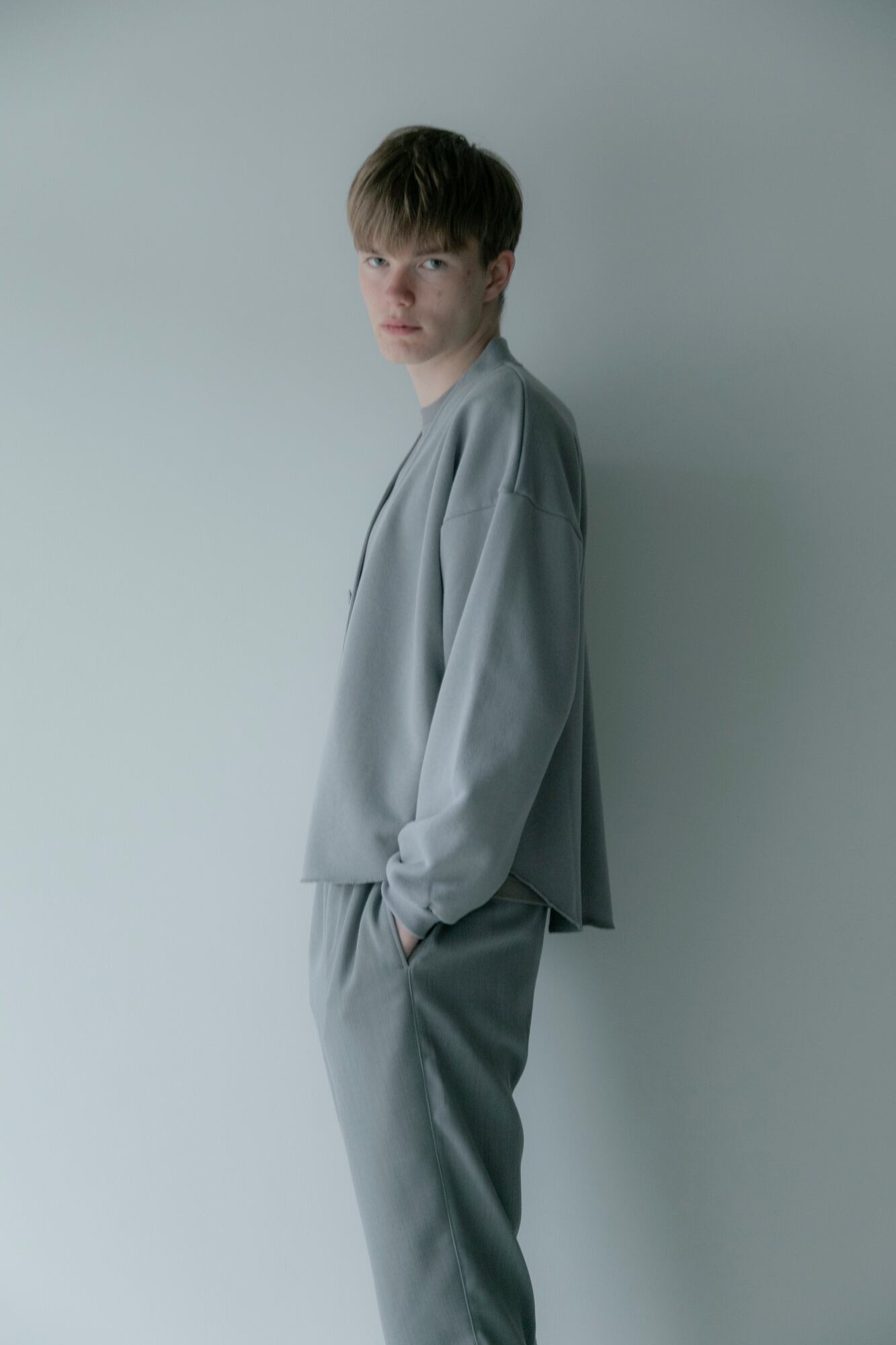 綿100%のUNISEXスウェットカーディガン。前後差のある着丈、ゆとりのある身幅に対して調節された丈感、リブではなくラウンドヘムでの仕立てが新鮮さを生み出します。1枚着るだけでスタイリングが完成する一品です。ワンサイズ展開です。